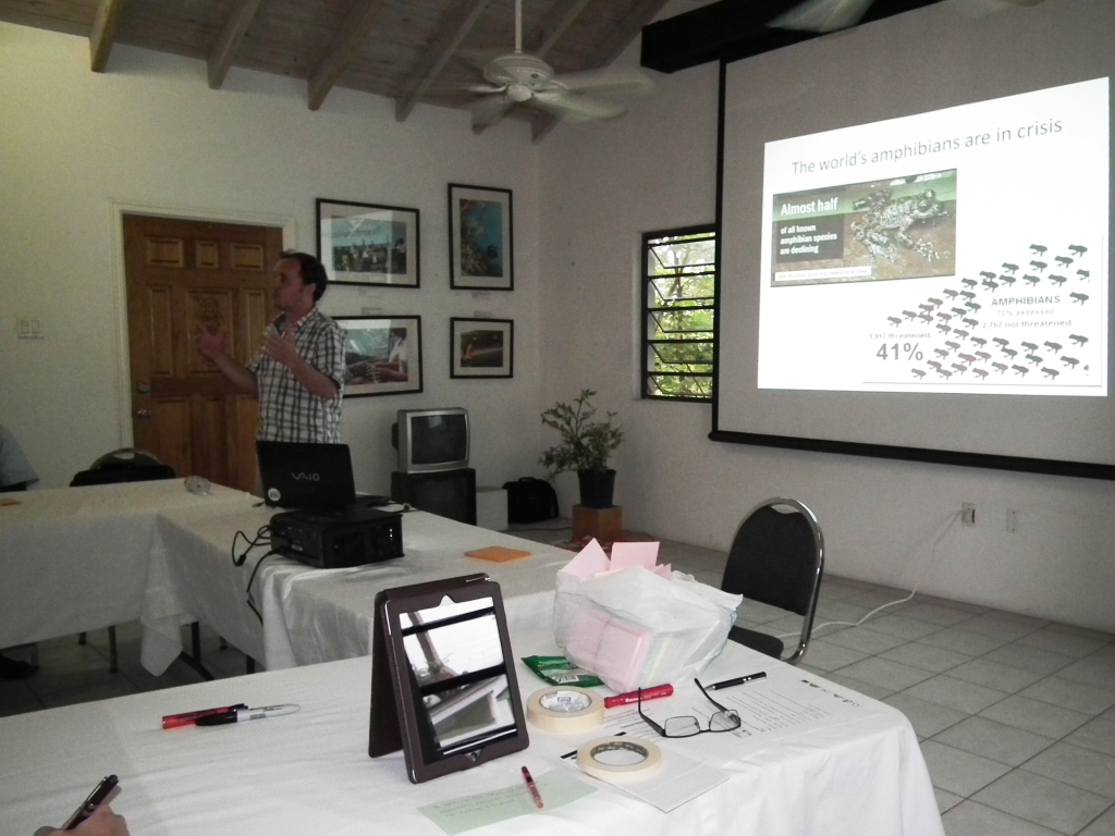 Dr. Rich Young presenting preliminary results from mountain chicken research Lloyd Martins presentation of survey results ©Stephen Mendes